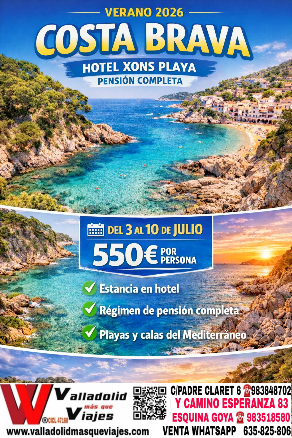 ☀️DISFRUTA DE SOL PLAYA PISCINA Y   COMIDA EN LAS PLAYAS DE COSTA BRAVA 2026 CON VALLADOLID MAS QUE VIAJES ☀️